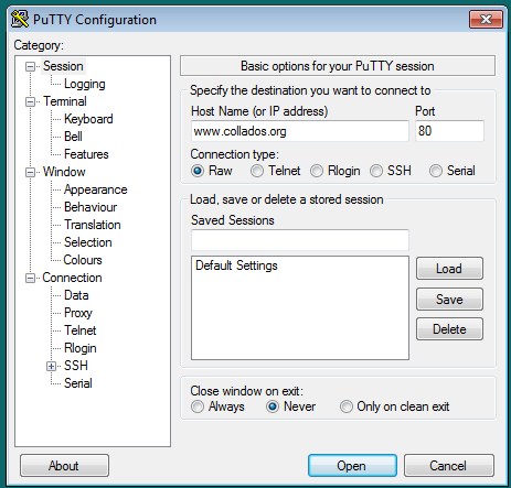 Treballant amb putty sobre Windows per estudiar el protocol HTTP